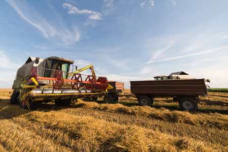 Russia, Poltavskaya village - September 6, 2015 Combine harvesters Agricultural machinery