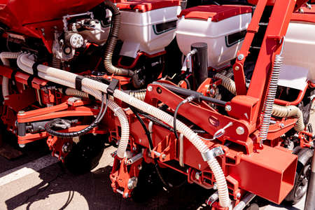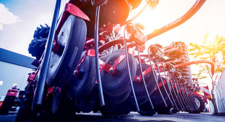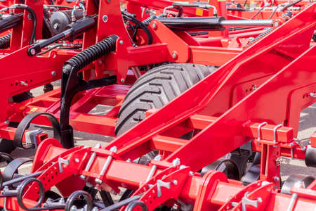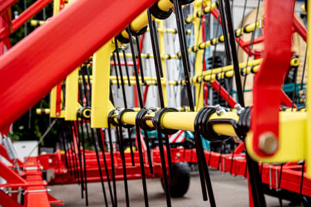 Modern agricultural machinery and equipment. Industrial details. Agricultural exhibition