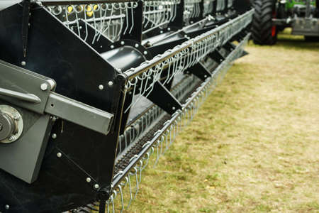 Agriculture equipment. Combine harvester, agricultural machinery, detail view.