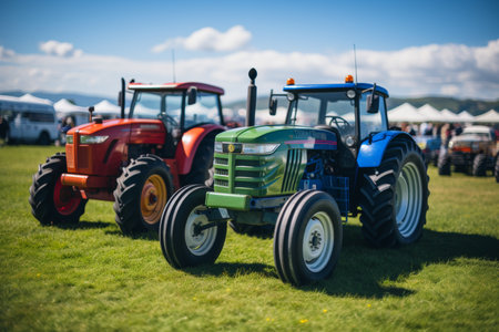 Hamburg, Germany - July 23, 2012: Antique Tractor Show exhibition. Vintage models of tractors. Exhibition of antique tractors. Tractor show, Agreecultural machines, Agreecultural equipment