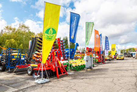 Samara, Russia - September 15, 2019: Modern agricultural machinery at the annual Volga agro-industrial exhibition