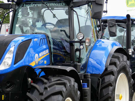 Devon, UK - July 30 2018: A New Holland agricultural vehicle being displayed