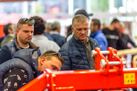 BOLOGNA, ITALY – NOVEMBER 10, 2018: people visiting the fair and shooting photos with mobile phone at EIMA 2018, International Agricultural and Gardening Machinery Exhibition