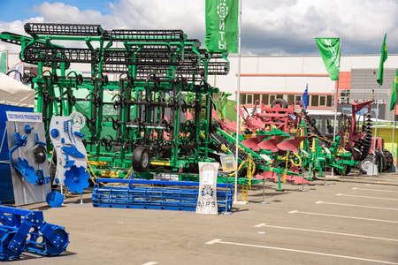 MINSK, MINSK, BELARUS 6 JUNE 2019, Exposition at the exhibition BELAGRO 2019. Various agricultural equipment.