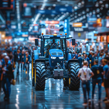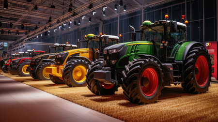 Tractor stands in the exhibition hall. Tractor stands in the exhibition hall.