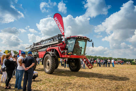 Belogorye, Khmelnytsky region, UKRAINE - August 19, 2021: self-propelled sprayers at the demonstration of agricultural machinery Battle of agrotitans