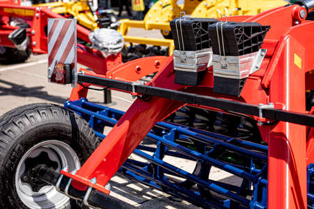 Agricultural machinery. Close-up of technical units and mechanisms of agricultural machinery. Springs and suspension elements