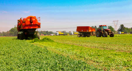 Johannesburg, South Africa - October 27 2010: Commercial Pea Farming with a Combine Harvester