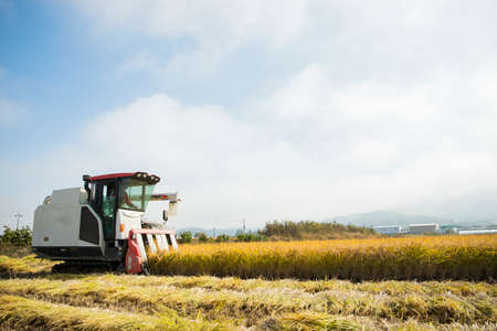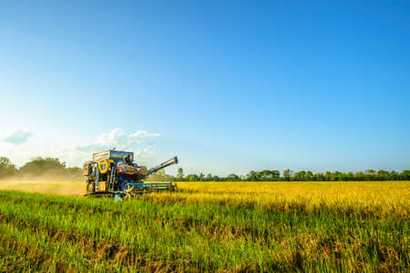 combine harvester is harvesting rice