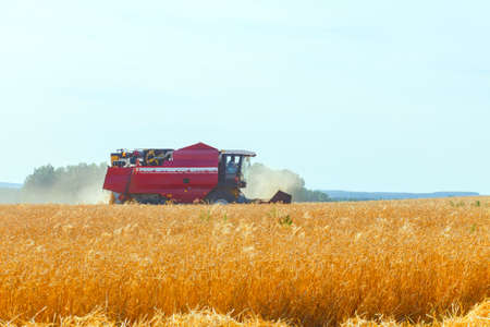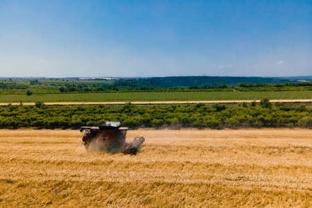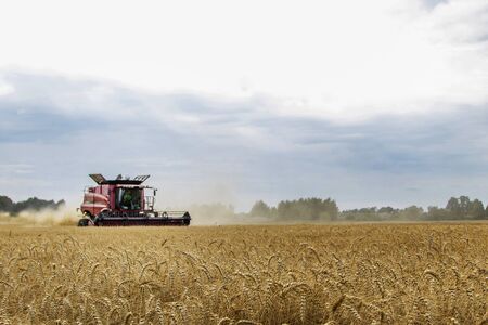 Combine harvester harvest ripe wheat on a farm