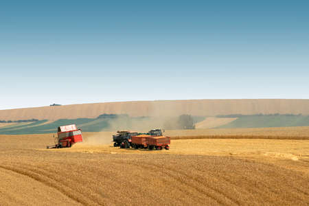 Wheat harvest in the big agricultural field