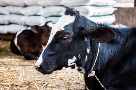 Cows in the stable on a farm. Selective focus.