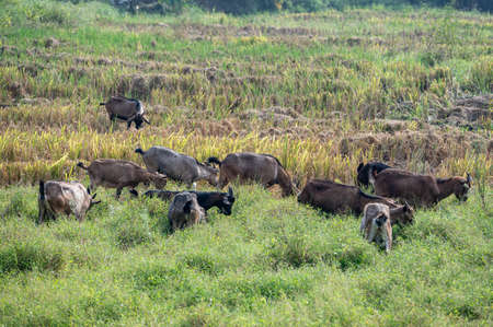 cattle grazing in the meadow. Pets: cows, goats, sheep