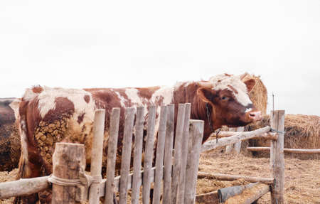 Cows on the form. Milk, meat production. Household animals.