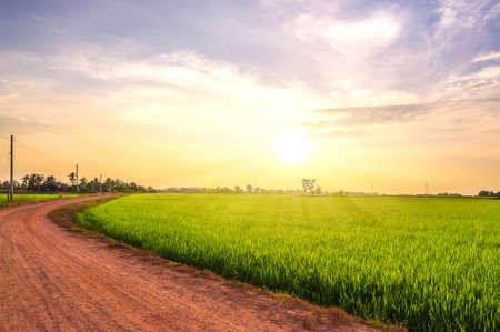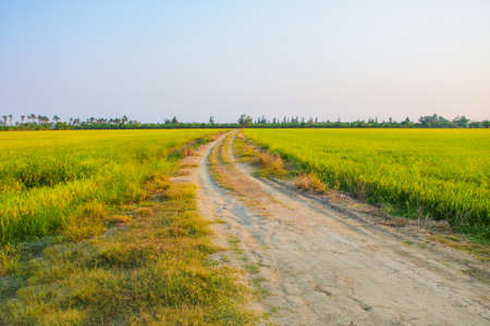 rural road and rice farm in evening