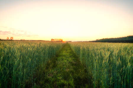 beautiful sunset in a wheat field with a path