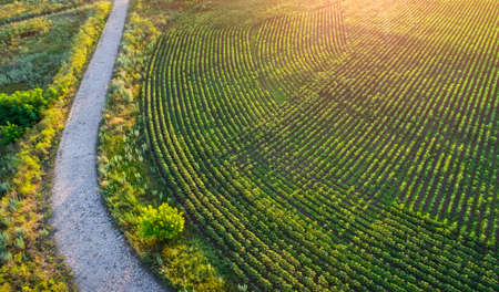 Road on the field. Agricultural landscape from air