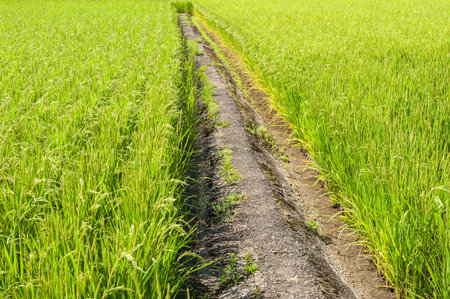 Small path in a field of rice in Japan