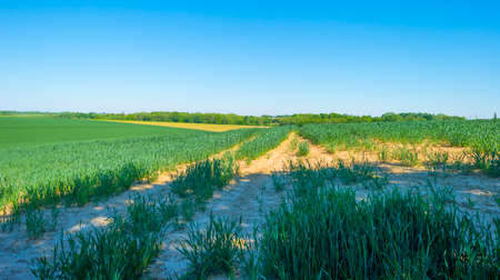 Summer view on agricultural crop and wheat fields ready for harvesting.