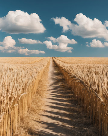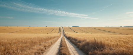 AI Generated. Peaceful Rural Countryside with Golden Fields and a Dirt Road