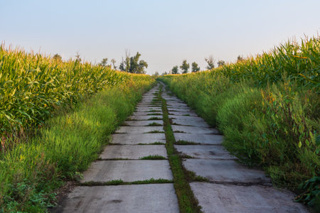 street in corn field at countryside