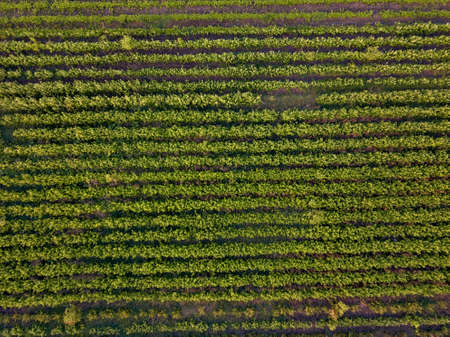 Vineyards, a suggestive aerial image over a vineyards in an amazing landscape, Agriculture Plantation Grapes Vine Vineyard Italy. Aerial Vineyard