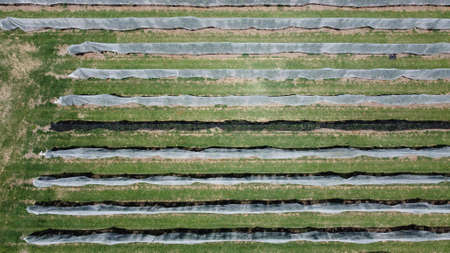 Aerial top shot from strawberry plants in the countryside from Portugal