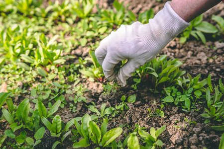Weed killer herbicide glyphosate spraying. Non-organic vegetables.