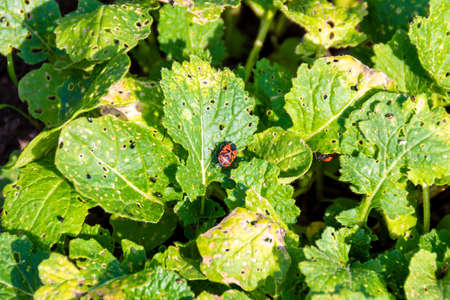 Garden pests attacking vegetable plants, a common issue for farmers and gardeners. Need for sustainable pest control