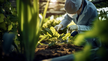 Botanist-pharmacologist in garden collecting plant samples botany-pharmacology intersection