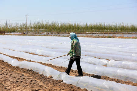 Farmers ventilate arch shed watermelons, North China Plain