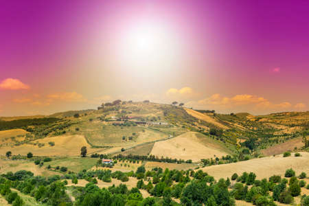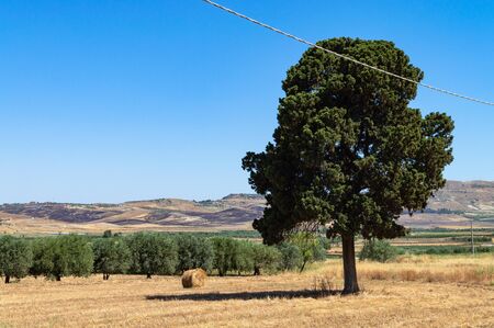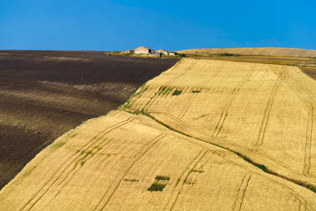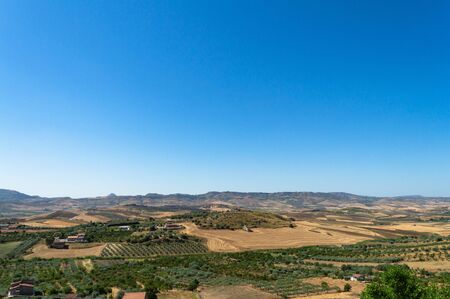 Hilly Sicilian rural landscape during the summer periosa in Marina di Butera