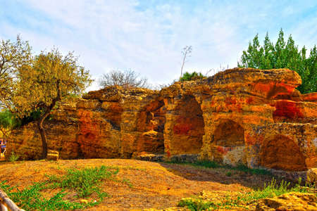 Ancient city wall with Arcosol Tombs in the Valley of the Temples in Agrigento, Sicily, Italy