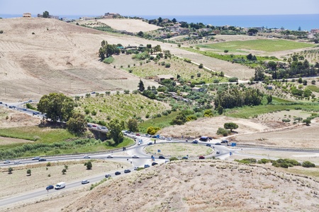 traffic in countryside on Mediterranean coast near Agrigento, Sicily