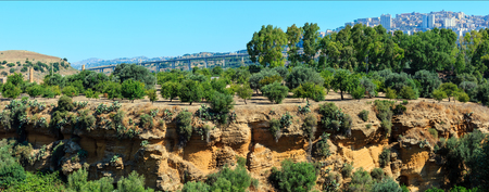 City of Agrigento as seen from the Valley of the Temples. or Valle dei Templi in Sicily, Italy