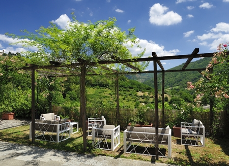 Romantic courtyard in the Italian villa. Villa Bordoni