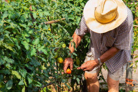 An AI generated illustration of tomatoes on plants in garden with people in background