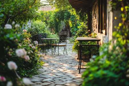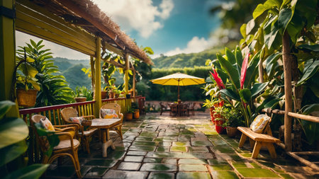 Generative AI : Garden natural eco cafe outdoor at spring and summer season