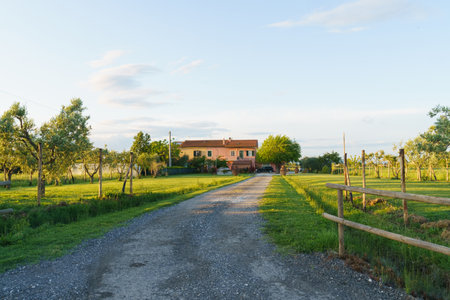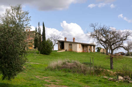 PIENZA, ITALY - JUNE 21, 2015: beautiful renovated tuscan manor at sundown near historic Pienza town in Italy