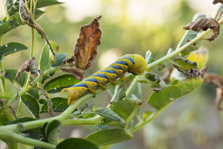 zenith view of an acherontia atropos caterpillar. macro photography. Copypace. nature wonderful