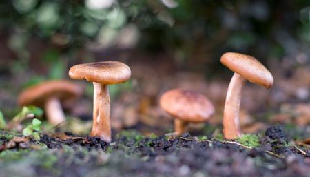 Honey mushrooms in forest moss. Concept pick mushrooms