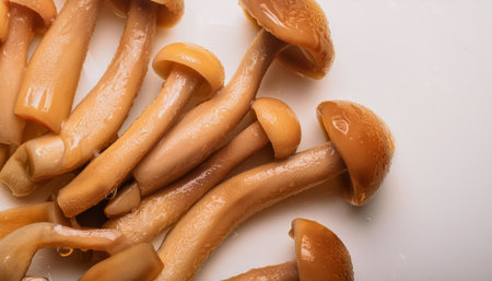 White and brown shimeji edible mushrooms native to East Asia, buna-shimeji is widely cultivated and rich in umami tasting compounds