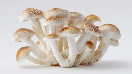 Fresh Shimeji Mushrooms Clustered on White Background.