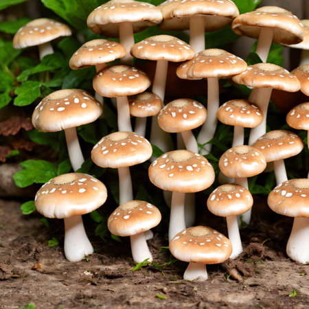 A stunning close-up of a cluster of fresh brown mushrooms showcasing their unique caps and stems, perfect for culinary applications and healthy eating themes.