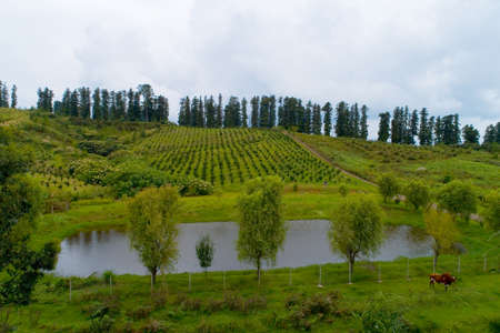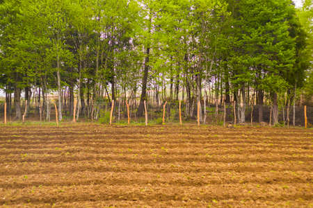 landscape of farm and Garden a row of plants .