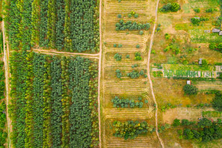 texture of fields and trees top view