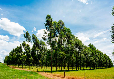 overview of eucalyptus plantation with blue sky