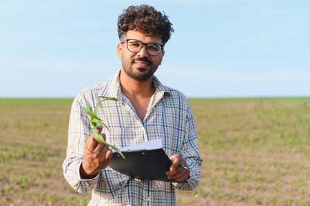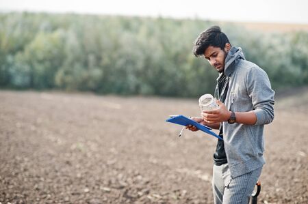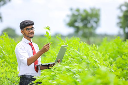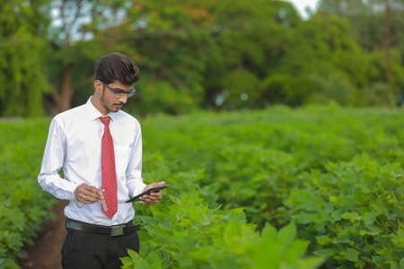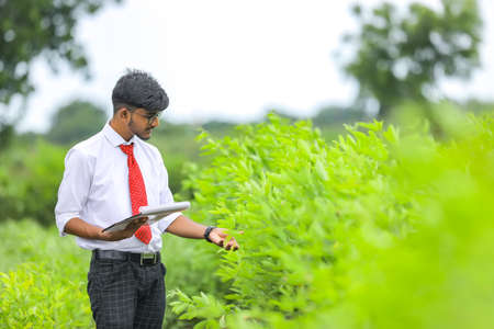 Young indian agronomist at agriculture field