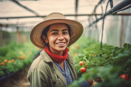 Happy Latin farmer working inside agricultural greenhouse , Farm people lifestyle concept