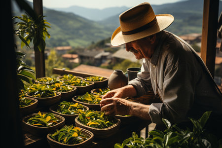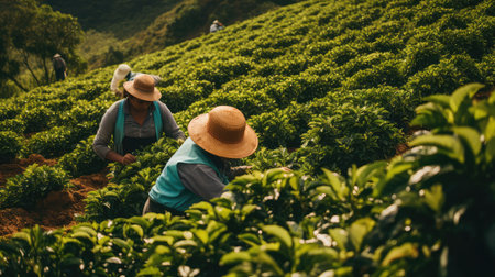 plantation coffee leaf illustration workers lush, mature handpicked, selection healthy plantation coffee leaf
